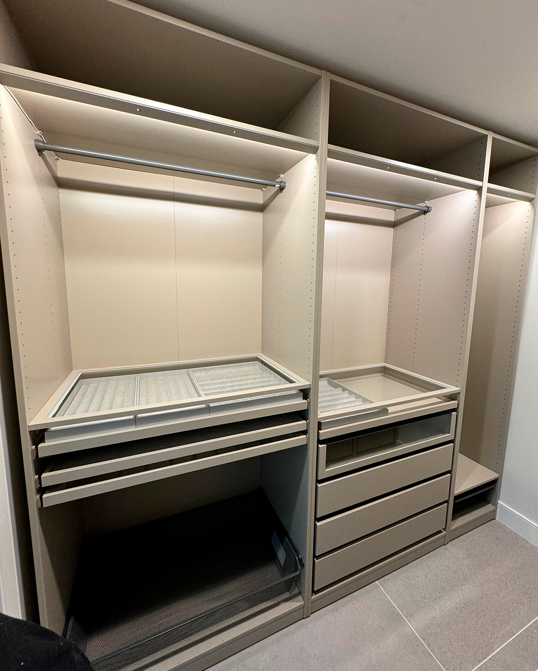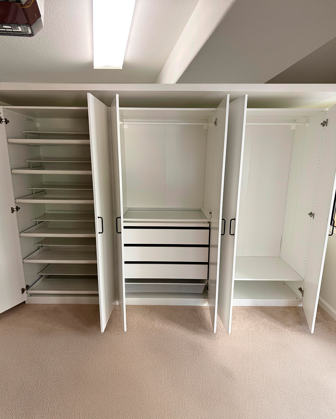 Our team assembles each Pax unit with attention to every detail, ensuring multiple cabinets integrate into a single, continuous system. The result is a closet that is perfectly aligned, fully functional, and beautifully finished. We provide reliable IKEA Pax installation throughout the Greater Bay Area for homeowners seeking precision and quality.