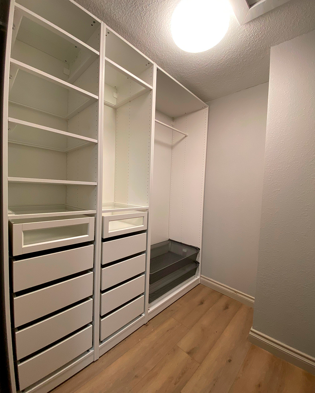 Professional IKEA Pax closet installation in the Greater Bay Area. Precisely aligned, level, and securely assembled for a clean, built in look. Our installation ensures smooth doors, aligned drawers, and a polished, high end finish.